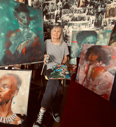 Billboard work on “Decorating the City with the Words and Art of Women+”